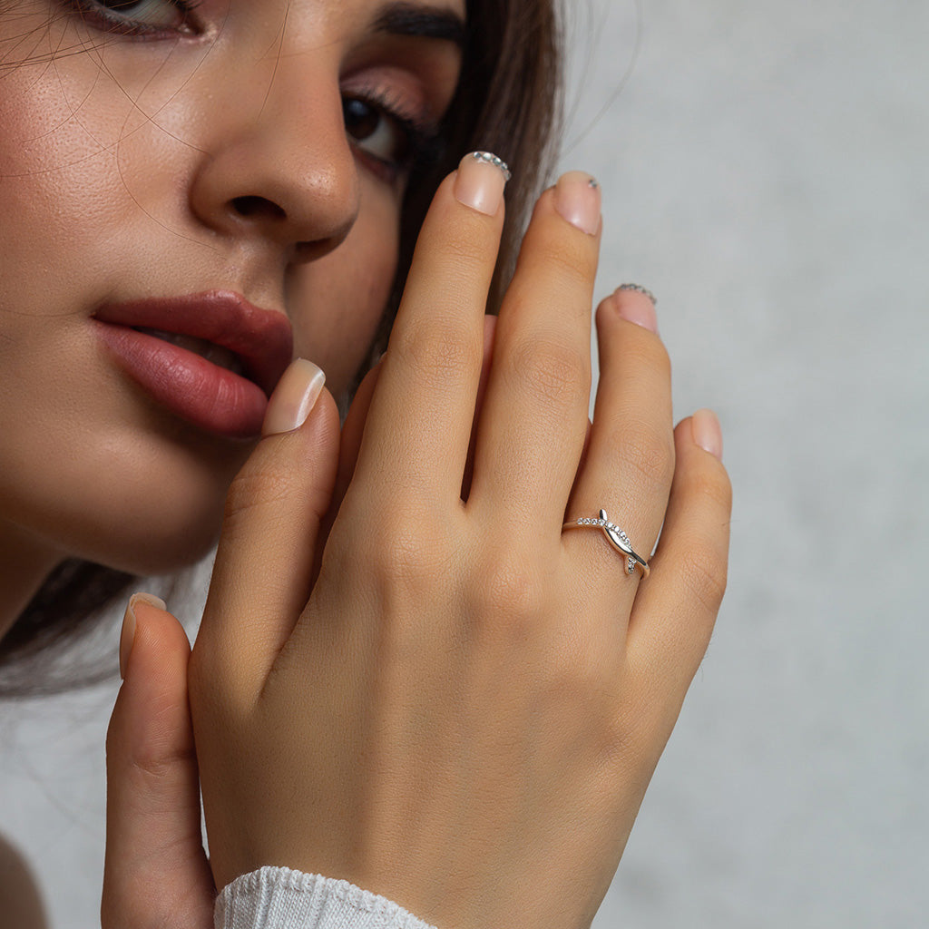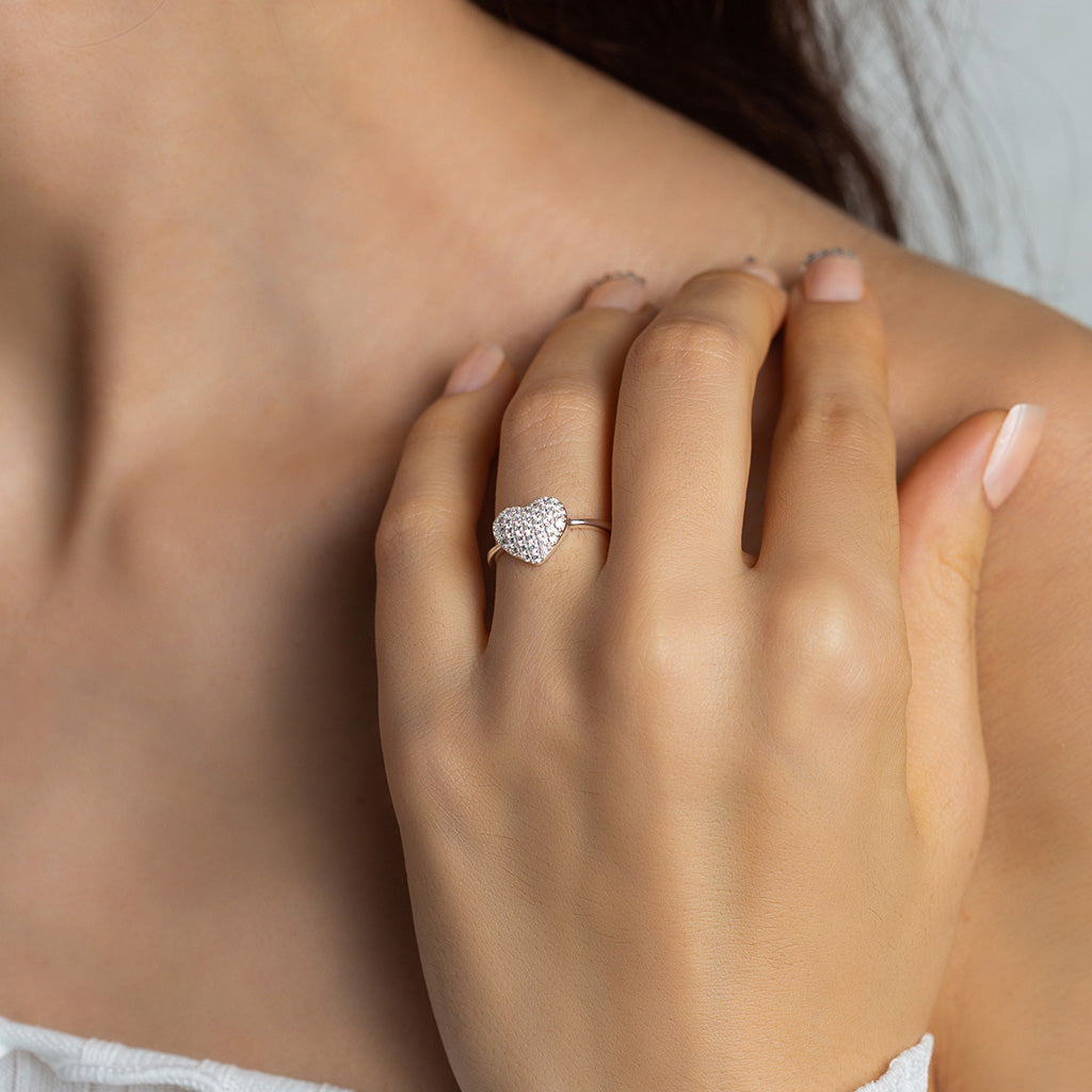 Silver Zircons Heart Ring