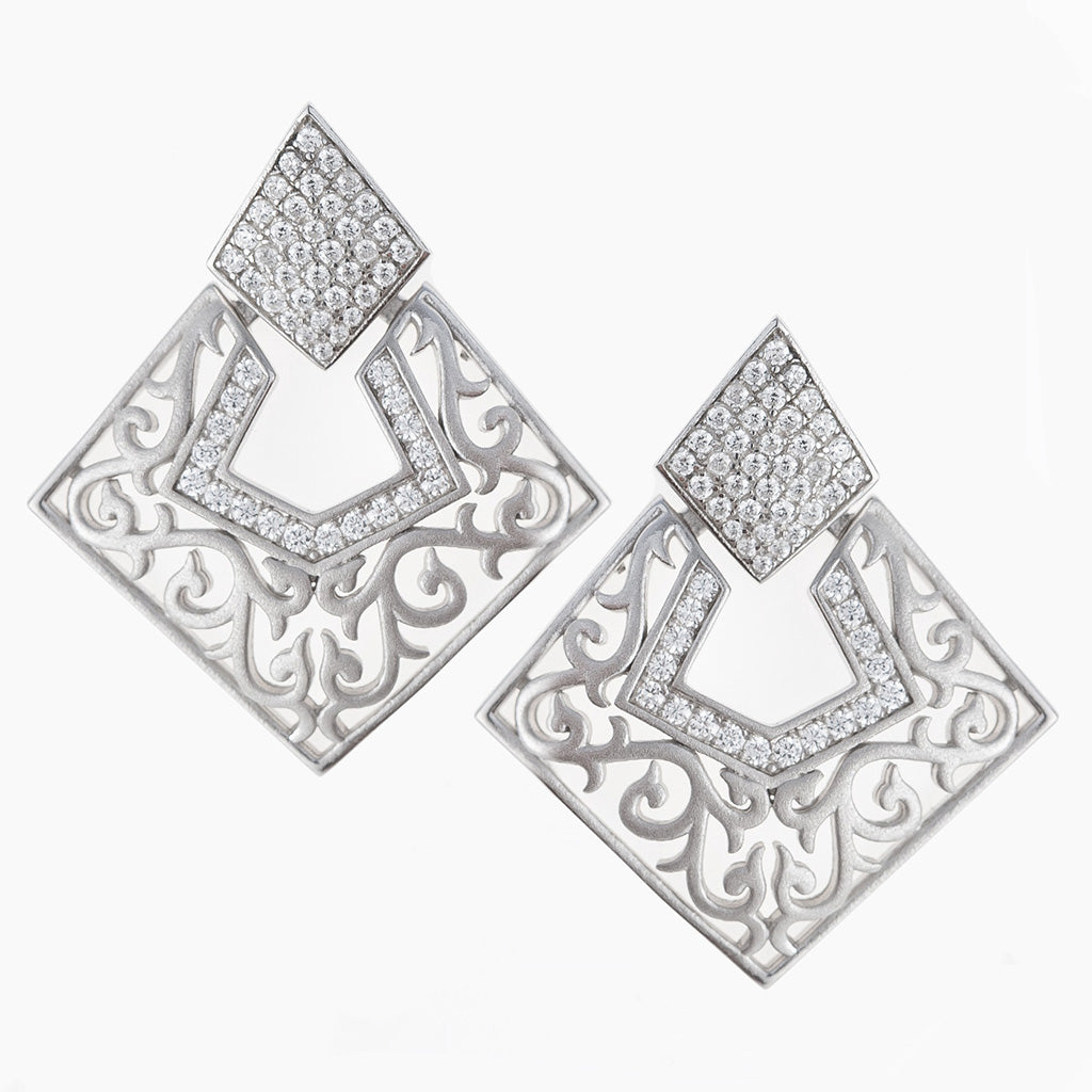Sterling Silver Rhombus Nawab Earrings