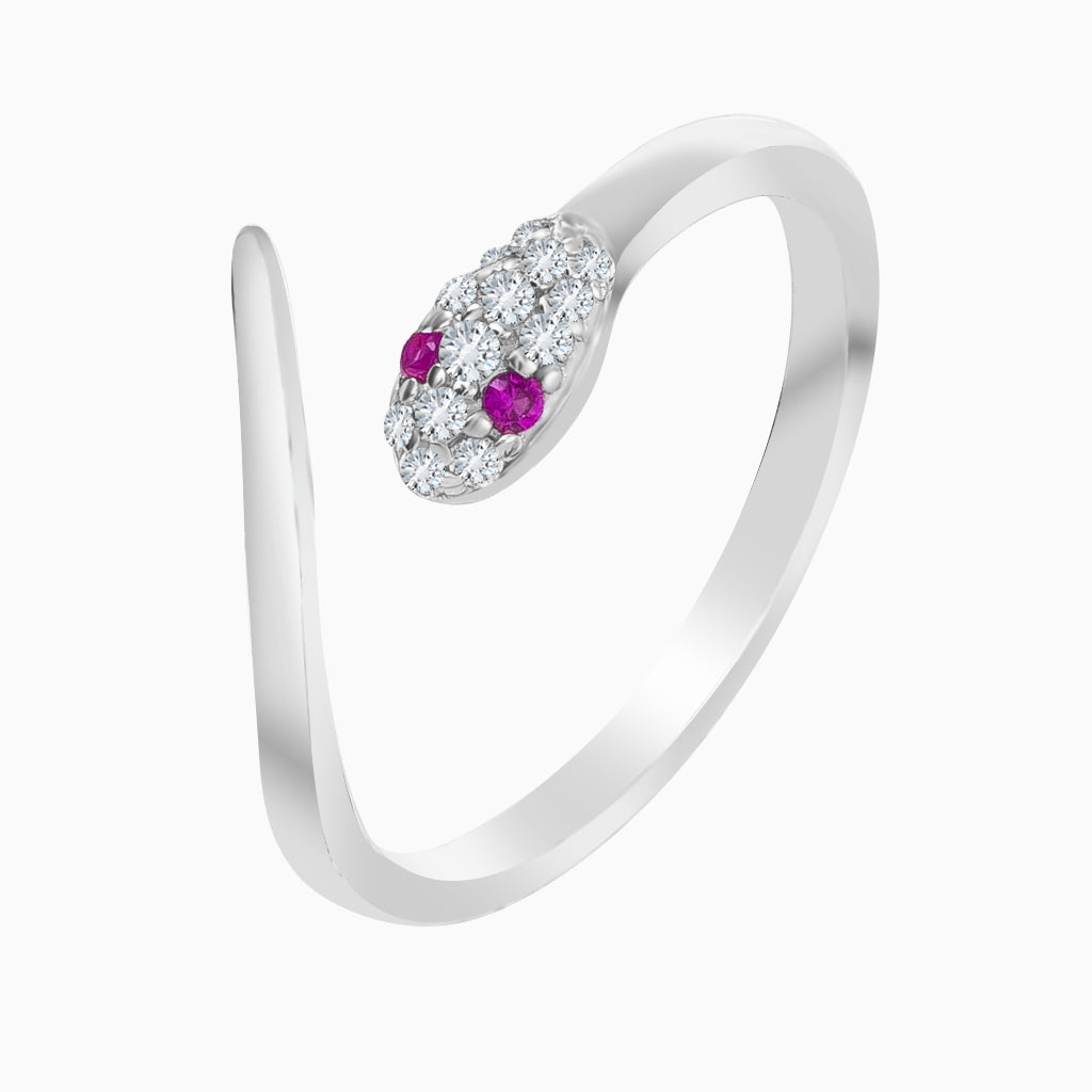 Silver Pink Eye Snake Ring
