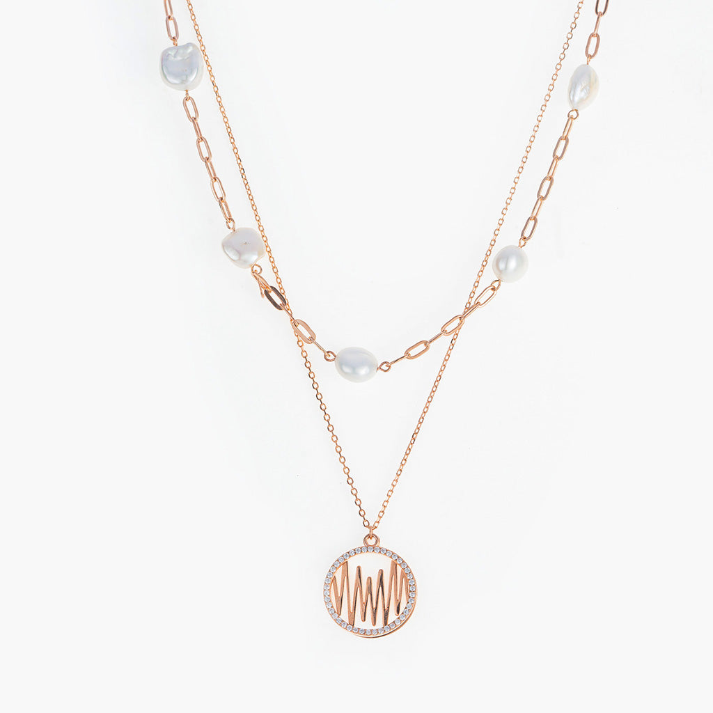 Rose Gold Heartbeat & Pearl Necklace
