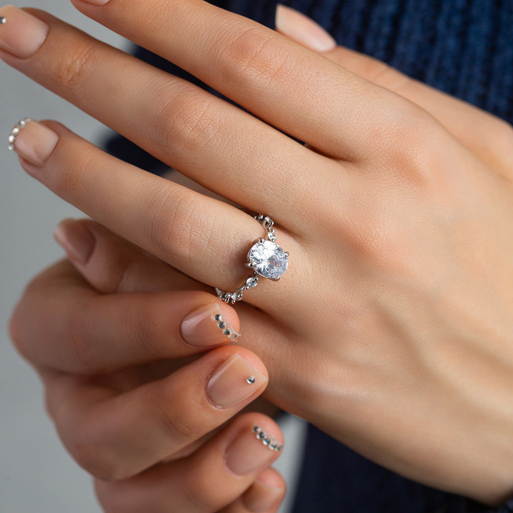 Silver Sparkling Stone Ring