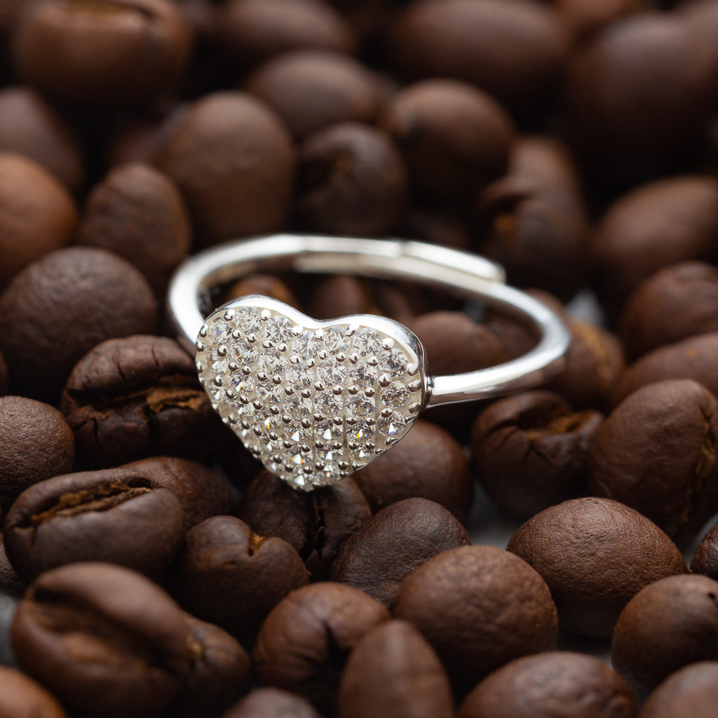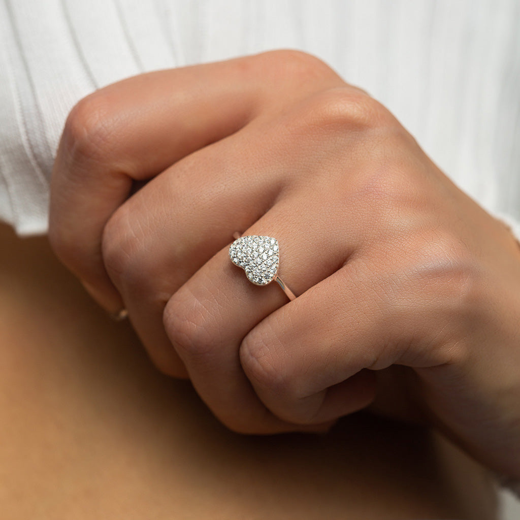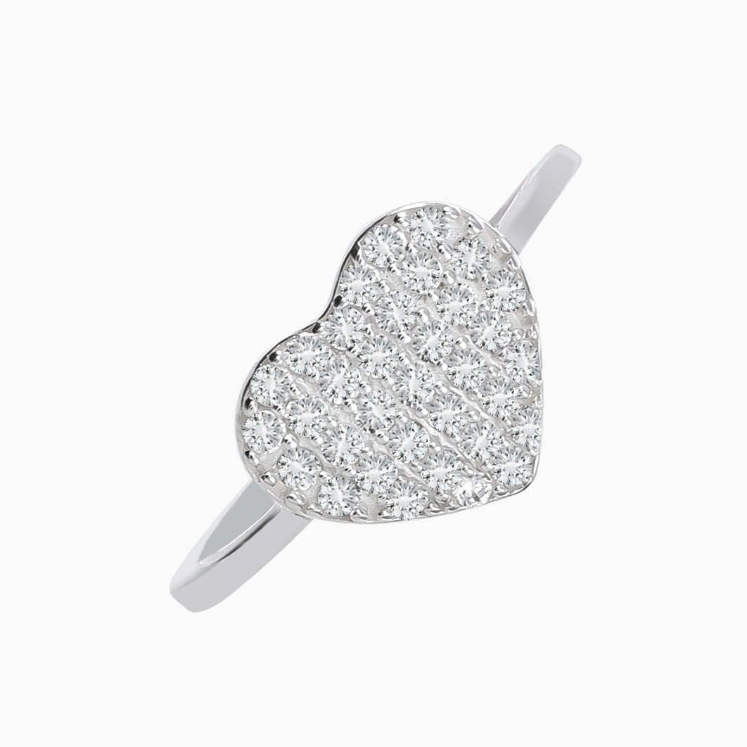 Silver Zircons Heart Ring