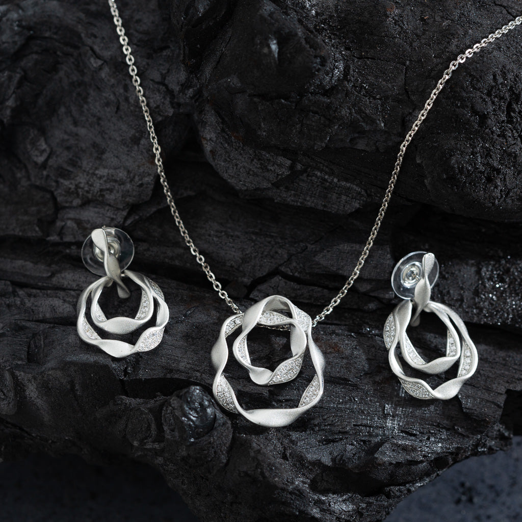 Silver Rose Jewelry Set